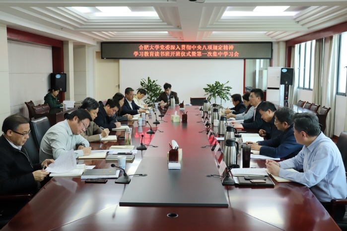 4月7日上午,合肥大學(xué)黨委深入貫徹中央八項(xiàng)規(guī)定精神學(xué)習(xí)教育讀書班開班式暨第一次集中學(xué)習(xí)在行政樓九樓東會(huì)議室舉行。黨委讀書班采用集中學(xué)習(xí)、自主學(xué)習(xí)和集中研討相結(jié)合的方式,黨委理論學(xué)習(xí)中心組全體成員參加。