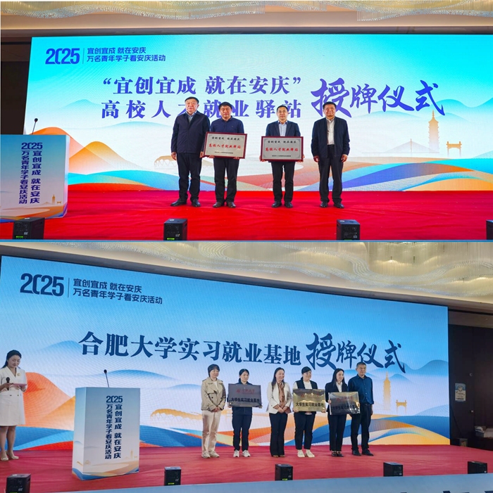 10日上午,學子們一抵達安慶,便收到包含人才政策手冊、企業崗位需求表及安慶特產的“暖心禮包”。在安慶市博物館,千年古城的歷史底蘊與現代活力交相輝映,為學子們勾勒出安慶的城市畫像?;顒拥膯觾x式上,白義香代表學校致辭,“宜創宜成 就在安慶”高校人才就業驛站授牌、就業實習基地授牌和家鄉推介官聘任等標志著校地企共建的就業驛站與實習基地全面落地?;顒蝇F場,安慶市20多家重點企業通過“直通面試卡”實現精準對接,為畢業生帶來別樣的面試體驗。次日,師生分赴安慶市重點高端裝備制造、生命健康和生物、化工等四家企業現場參觀。