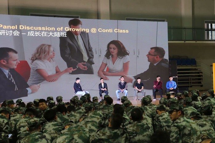 Die Veranstaltung stand allen Studienanf?ngern des Jahrgangs 2020 in Natur- und Ingenieurwissenschaften offen. W?hrend der milit?rischen Ausbildung sahen sich die Erstsemester das Video an, in dem die Unternehmenskultur des Continental-Konzerns und das Projekt der Conti-Klasse sorgf?ltig vorgestellt wurden. Danach betrat Zhang Guangzhou, Projektleiter für die Conti-Klasse, die Bühne, um den spezifischen Inhalt des Projekts vorzustellen.