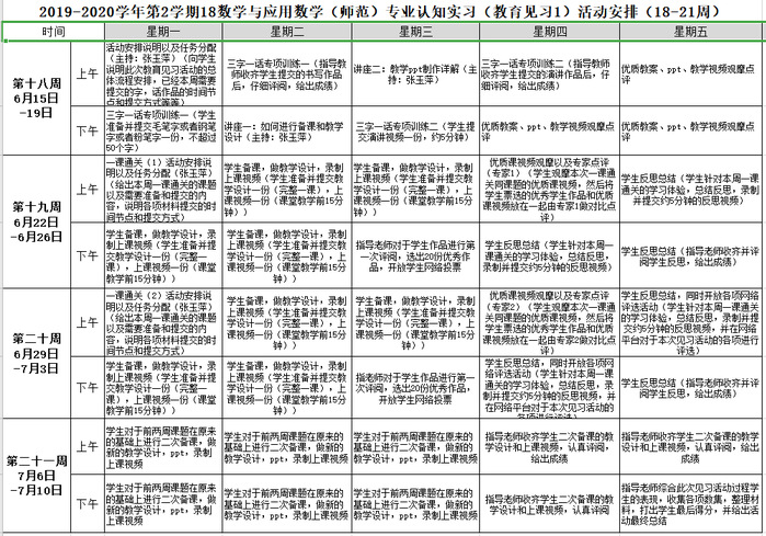 2020年初新冠肺炎爆發(fā),師生雖無法在校園相聚,但教育教學(xué)沒有就此按下“暫停鍵”。我校貫徹落實教育部下發(fā)的“停課不停學(xué)”等相關(guān)工作通知,迅速籌備線上教學(xué)。2月至3月,人工智能與大數(shù)據(jù)學(xué)院數(shù)學(xué)與統(tǒng)計系勇于探索新形式、有效設(shè)置新內(nèi)容,為16級數(shù)學(xué)與應(yīng)用數(shù)學(xué)專業(yè)的96位同學(xué)開設(shè)了為期四周的以教育實習(xí)反思為主要內(nèi)容的“線上教育研習(xí)”實訓(xùn),取得了良好效果。中國教育報將其作為典型案例刊發(fā)了專題報道《過好應(yīng)用型課程線上教學(xué)關(guān)》。