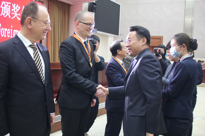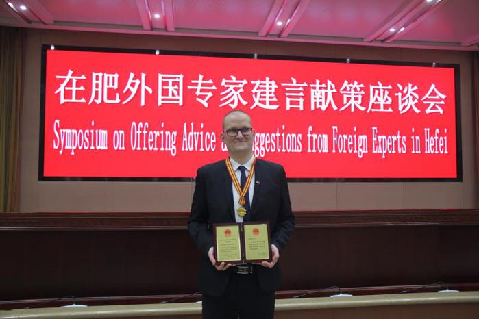 Prof. Dr. Thomas Weise, ein deutscher Professor der Universit?t Hefei, erhielt den ?Hefei Friendship Award und hielt eine Dankesrede für die Auszeichnung. Er sagte, Hefei sei eine innovative, offene und fortschrittliche Forschungsstadt und eine der attraktivsten St?dte für ausl?ndische Experten in China, in der sich viele herausragende Fachkr?fte auf dem Gebiet der wissenschaftlichen Forschung versammelt haben. Er betonte, dass er hier viel gewonnen habe: ?Als ich hierher kam, traf ich Forscher, die besser waren als ich. Ich bin hierher gekommen, um zu lernen.