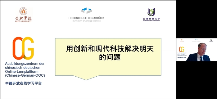 Im Namen des Bildungsministeriums der Provinz Anhui gratuliert Zhang Geng zur Unterzeichnung der drei Hochschulen. Er sagte, dass die Universit?t Hefei und die Hochschule Osnabrück einen guten Kooperationsmechanismus des gegenseitigen Respekts, der gegenseitigen Unterstützung und des gegenseitigen Vertrauens in engem Austausch etabliert und eine gemeinsame berufliche Entwicklung, eine gemeinsame Ausbildung von Studierenden und einen gemeinsamen Versuchsaufbau realisiert h?tten. Er betonte, dass die Zusammenarbeit zwischen den drei Hochschulen eine neue Erkundung und einen Fortschritt in der chinesisch-deutschen Zusammenarbeit und der integrierten Entwicklung des Jangtse-Deltas darstelle . Der Bau und die Aktivierung einer offenen Online-Lernplattform h?t ten eine Online-Freundschaftsbrücke und Autobahn für deutsch-chinesische Zusammenarbeit und Austausch errichtet. Es erschloss neue Bereiche und neue R?ume für die deutsch-chinesische Zusammenarbeit und den Austausch. Das Bildungsministerium der Provinz Anhui wird weiterhin die Kooperationsprojekte der Universit?t Hefei und die Errichtung einer hochrangigen Universit?t der Universit?t Hefei unterstützen.
