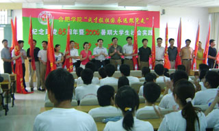 最后,院黨委副書記、院長趙良慶等領(lǐng)導(dǎo)為18支志愿服務(wù)團隊授旗,標(biāo)志合肥學(xué)院2006年暑期社會實踐活動全面啟動。(團委)