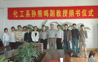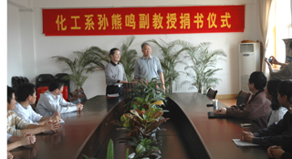 4月30日上午,我院退休教師、原化學與材料工程系副主任孫熊鳴副教授捐書儀式,在我院北區行政樓會議室隆重舉行。化學與材料工程系主任邵國泉教授、教務處副處長董強副教授及該系部分師生近20人參加捐書儀式。