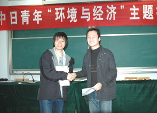 副院長蔡敬民致辭。蔡敬民在致辭中說,希望中日以此為起點,更多地開展中日兩國在“環境與經濟”方面的活動,也希望來訪日本大學生將友誼帶回日本,讓更多的日本朋友了解中國。交流會上,中日大學生分別從環境保護、經濟發展、中日交流方式三個方面進行了探討,并簽署了環保要從娃娃抓起、不使用一次性用品等6個方面的聯合宣言。