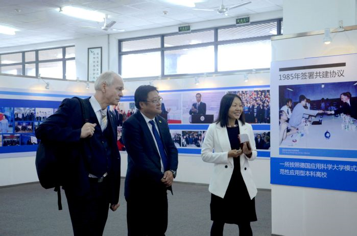 Beide Seiten führten einen intensiven Austausch zur deutsch-chinesischen Hochschulkooperation.Im Anschluss an die Sitzung besuchten die Teilnehmer die Ausstellung über die Errungenschaften des chinesisch-deutschen Gemeinschaftsaufbaus der Universit?t Hefei.