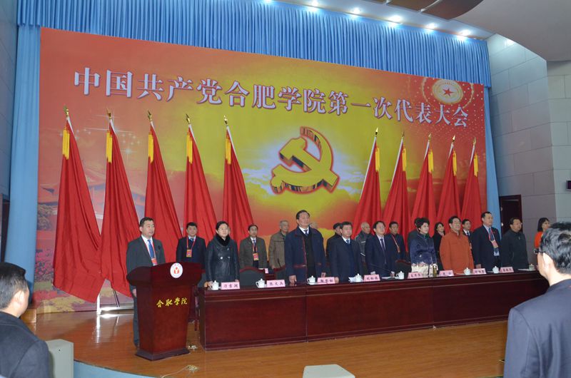 報告廳內氣氛莊嚴熱烈,大會主席臺上方懸掛著“中國共產黨合肥學院第一次代表大會”的會標,下方正中是金光閃閃的黨徽,鮮艷的紅旗分列兩側。本次大會的主題是:高舉中國特色社會主義偉大旗幟,以鄧小平理論和“三個代表”重要思想、科學發展觀為指導,全面貫徹黨的十八大和十八屆三中、四中全會精神,深入學習貫徹習近平總書記系列重要講話精神,堅持改革創新、開放辦學,主動適應地方經濟發展新常態,主動適應高等教育改革與發展的新趨勢,全面深化教育教學改革,全面推進依法治校,全面加強黨的建設,以人才培養為根本,以提高質量為核心,以改革創新為動力,解放思想、凝心聚力、攻堅克難,以更加開闊的視野、更加奮發的精神、更加務實的作風、更加執著的努力,加快推進地方應用型高水平大學建設進程。
