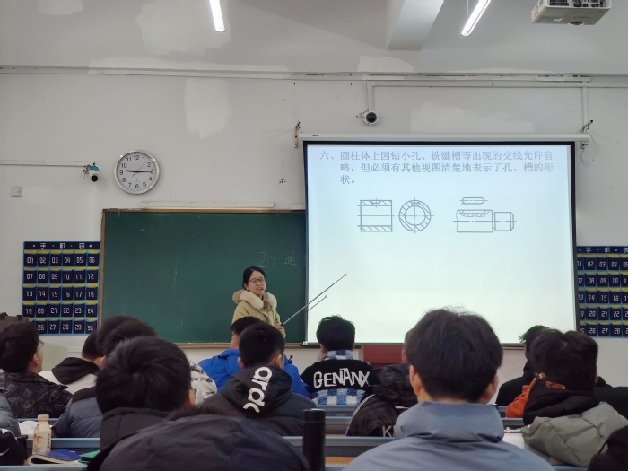 “每天最快樂的事情就是上課。”采訪伊始,劉丹萍老師親切地笑著說道。劉老師所教授的《機(jī)械產(chǎn)品表達(dá)》課程,旨在培養(yǎng)學(xué)生掌握繪制和閱讀工程圖樣的基礎(chǔ)技能,而想要學(xué)好其中的難點(diǎn),繞不開投影法。投影是什么?大到航空航天制造、小到螺母配件生產(chǎn)都與其密切相關(guān)。將三維結(jié)構(gòu)展現(xiàn)在二維圖紙上,需要抓住每個視圖中的主要特征并將復(fù)雜的線條直觀化,這對空間想象能力要求極高。和大多數(shù)工科課程一樣,起初同學(xué)們并沒感受到投影法與他們習(xí)以為常的思政課有什么關(guān)系,甚至還因?yàn)閮?nèi)容抽象產(chǎn)生了畏難情緒。