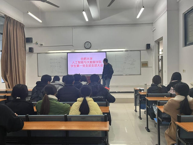2024年11月29日,合肥大學人工智能與大數據學院學生第一黨支部在36棟110教室舉行了支部大會。此次會議圍繞巡視巡察專題學習及侯佳樂、侯定方、周豪、金玲玲四位預備黨員的轉正議題展開,由支部書記汪劍老師主持,共有20名黨員參會,其中具備表決權的黨員達6名。
