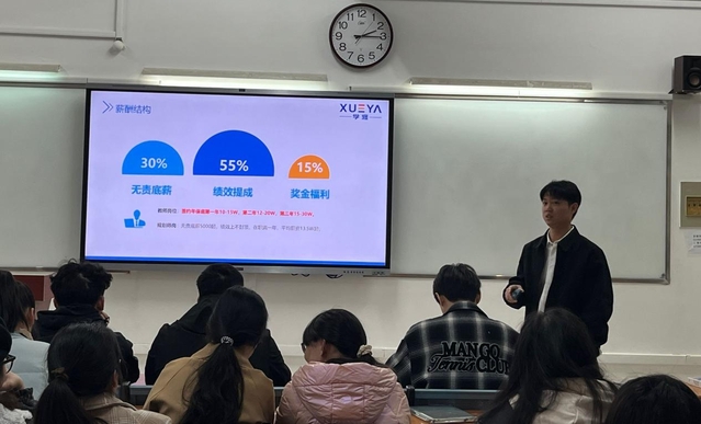 宣講會伊始,公司代表以充滿激情的開場白拉開序幕,并對公司的概況進行了詳細介紹,包括發展歷程、業務范圍以及未來發展規劃,使學生們對學涯教育有了全面的了解