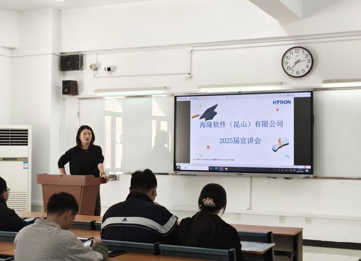 在宣講過程中,海隆軟件(昆山)有限公司的HR向在場(chǎng)的求職學(xué)生全方位展示了公司的企業(yè)文化、發(fā)展歷程、業(yè)務(wù)布局、雄厚的技術(shù)實(shí)力以及明晰的未來發(fā)展規(guī)劃。考慮到畢業(yè)生即將踏入社會(huì),公司著重對(duì)招聘崗位、薪資福利體系、職業(yè)晉升通道等關(guān)鍵內(nèi)容進(jìn)行了詳細(xì)解讀,讓同學(xué)們收獲頗豐。