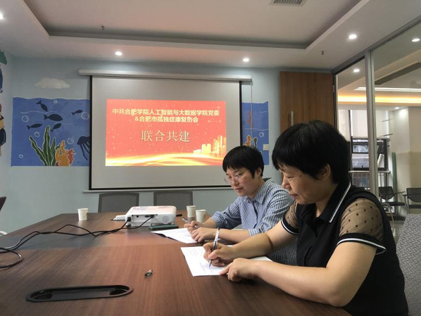 2021年7月26日,人工智能與大數據學院牛欣書記、數學與統計系王磊主任以及該院青年教師鄭朝陽博士赴合肥市孤獨癥康復協會,在該協會駐地調研教育實踐基地,并簽訂實踐基地協議。