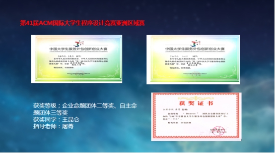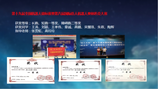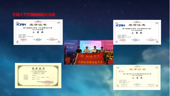 近五年在師生共同努力下,共獲得國際獎項20項、國家級獎項120項、省級獎項380項。主要獎項有:2019年美國大學生數學建模競賽國際級二等獎,"正大杯"第九屆全國大學生市場調查與分析大賽國家級二等獎、第十一屆全國大學生數學競賽(非數學類)省級一等獎、2016RoboCup伊朗公開賽冠軍、2017RoboCup葡萄牙公開賽季軍、2018RoboCup加拿大公開賽季軍、第41 ACM國際大學生程序設計競賽亞洲區域賽銅獎、2018百度“EasyDL不可思議創意開發大賽”冠軍(第一名)2018國際水中機器人大賽二等獎、第十屆全國大學生創業大賽全國銅獎、第二屆全國“互聯網+”大學生創新創業大賽銅獎、第四屆中國“互聯網+”大學生創新創業大賽省賽金獎、第十四屆“挑戰杯” 全國大學生課外學術科技作品競賽國家三等獎等,獲批大學生創新創業訓練計劃項目國家級86項,省級168項,先后有2人次學生獲得安徽省“創新之星”榮譽稱號。