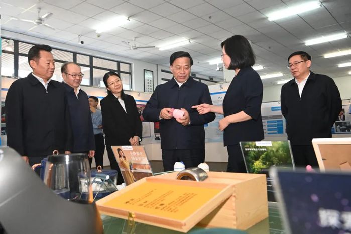 合肥學(xué)院是一所應(yīng)用型高等院校,綜合實(shí)力位居省內(nèi)學(xué)院類高校前列。韓俊走進(jìn)學(xué)校辦學(xué)成果展廳,聽取學(xué)院發(fā)展情況匯報(bào),鼓勵學(xué)院堅(jiān)持“地方性、應(yīng)用型、國際化”辦學(xué)定位,持續(xù)深化教育教學(xué)改革,扎實(shí)推進(jìn)學(xué)科專業(yè)、教學(xué)資源平臺等建設(shè),努力培養(yǎng)更多高素質(zhì)應(yīng)用型人才。安徽省綠色涂料高性能助劑工程研究中心,是合肥學(xué)院創(chuàng)建的高水平科研創(chuàng)新平臺。韓俊來到中心,深入了解科技創(chuàng)新、成果轉(zhuǎn)化等情況,對“企業(yè)出題、項(xiàng)目驅(qū)動、真題真做、市場檢驗(yàn)”模式給予肯定。他說,要支持高校聯(lián)合科研院所、產(chǎn)業(yè)鏈上下游企業(yè)組建新型研發(fā)機(jī)構(gòu),推進(jìn)科技成果轉(zhuǎn)化的要素精準(zhǔn)匹配和深度對接,開展有組織和訂單式科研創(chuàng)新活動,不斷提高科技成果轉(zhuǎn)化和產(chǎn)業(yè)化水平。