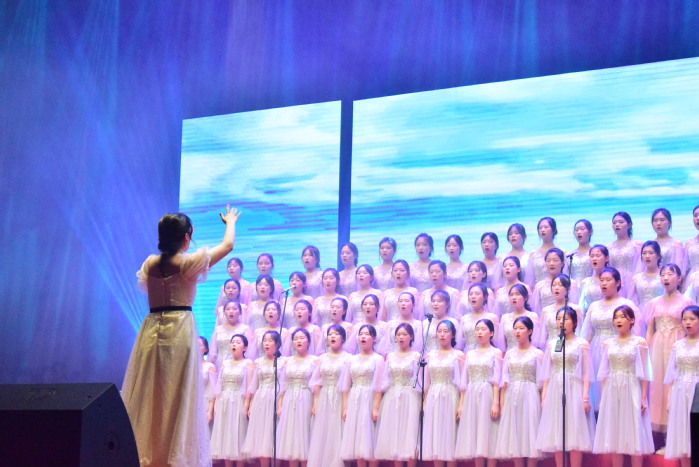 一曲《燈火里的中國》從“都市燈影”唱到“燦爛中國夢”,贊頌了新時代安寧祥和的燈火中國。《走向復興》《共筑中國夢》等歌曲以鏗將有力的旋律,迸發出勇往直前的力量,祝福祖國蓬勃發展、蒸蒸日上。《微微》《明天會更好》獻給所有處于青春年華的學子們,讓青春活出精彩,讓“青春夢”融入“中國夢”,表達了青年昂揚向上、一往無前的斗志。黃河,是溫柔的紐帶,連接著中華兒女同甘共苦的脈搏,《保衛黃河》唱出了對祖國和黨發自肺腑的禮贊。《國家》凝聚了國與家的深厚感情,展現了國的強大與家的溫暖。《不忘初心》《唱支山歌給黨聽》《山河已無恙》帶我們追憶百年征程波瀾壯闊,帶我們感受百年初心歷久彌堅,表達了新時期我校學子堅定不移聽黨話、跟黨走,讓紅色基因、革命薪火代代傳承的決心。