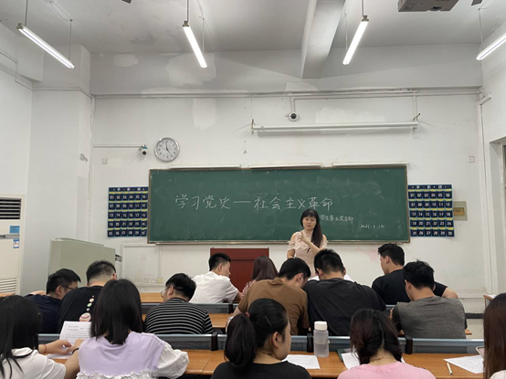 2021年6月10下午,人工智能與大數據學院學生第五黨支部書記王桂云在我校36棟105教室主持開展了以“社會主義革命”為主題的黨史學習活動,支部學生黨員悉數參加。在慶祝中國共產黨百年華誕的重大時刻,我支部開展黨史學習教育,引導學生黨員在知信行中悟初心、踐使命,正當其時,十分必要。