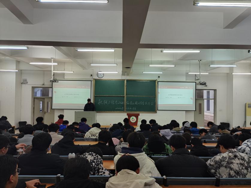 本次分享會邀請到了優秀校友、南京航空航天大學研究生葛文祥、合肥工業大學研究生馬海亭兩位學長做專題交流。兩位校友憑借在各自學業道路上積累的豐富經驗,為現場的同學們帶來了干貨滿滿的專題分享。他們從大學生職業生涯規劃出發,結合自身經歷,詳細闡述了如何在大學期間合理規劃學業,為未來的職業發展打下堅實基礎。在學業發展提升方面,分享了高效的學習方法、科研項目參與經驗以及如何利用大學資源提升自己。對于機制機電專業認知提升,他們深入剖析專業內涵,介紹行業前沿動態,讓同學們對所學專業有了更清晰的認識。在考研考公深造方面,校友們分享了備考經驗、院校選擇技巧以及深造后的職業發展路徑,為有深造意向的同學指明方向。