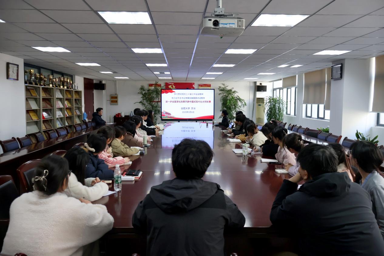 3月6日下午,合肥大學2025年第一期發展對象培訓班第二場理論授課在38-305 會議室舉行。合肥大學馬克思主義學院直屬黨支部書記、副院長蘇冰教授作為主講人,她以“進一步全面深化改革,開辟中國式現代化光明前景” 為主題,為學員們帶來了一場精神盛宴。
