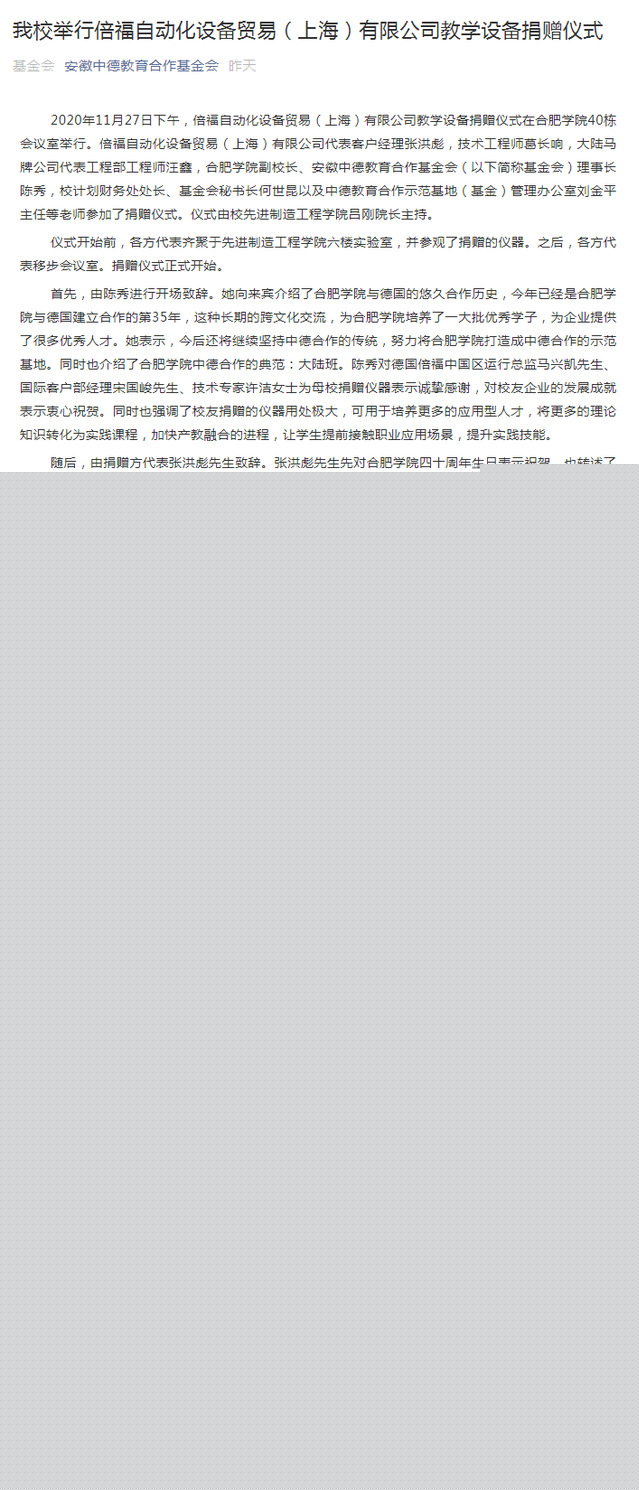 我校舉辦倍福自動化貿易(上海)有限公司教學設備捐贈儀式