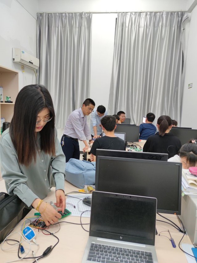 “不忘教育初心,牢記育人使命”,為切實(shí)開展好“我為身邊師生辦實(shí)事”主題黨日活動(dòng),2021年5月11日晚,黨員教師在38棟108對學(xué)生進(jìn)行安徽省機(jī)器人大賽-單片機(jī)嵌入式系統(tǒng)應(yīng)用技能競賽進(jìn)行賽前輔導(dǎo)。自2021年3月份起,支部黨員教師盧軍、張勝、沈鳳嬌和李瑤積極關(guān)注并輔導(dǎo)參賽學(xué)生訓(xùn)練情況,直至大賽開始。
