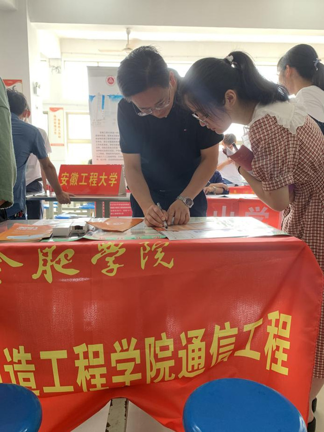 活動現場,我校代表向學生詳細介紹了我校2021年的招生計劃,同時發放招生宣傳材料百余份,圍繞家長和學生提出的熱點問題一一進行耐心、細致的講解,以更好的幫助野寨中學學生了解學校、學院和通信工程專業的情況。