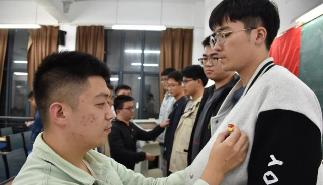 機制學生黨支部6名正式黨員為2021年下半年新發展的25名黨員佩戴了嶄新的黨員黨徽,通過老黨員向新黨員佩戴黨員黨徽活動,彰顯了黨的偉大事業代代相傳,同時傳遞黨的責任和擔當精神,鞭策新黨員不忘初心、牢記使命,自覺履行黨員義務,聽黨話、感黨恩、跟黨走,全心全意為人民服務,矢志不渝為黨奮斗。