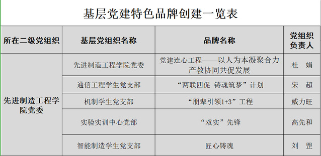 先進制造工程學院黨委積極響應學校號召,高度重視基層黨建品牌創建工作。學院召開了全體黨支部書記會議,專題布置基層黨建品牌創建工作。經過學院黨委積極申報,經學校黨委認定,同意我院《黨建連心工程—以人為本凝聚合力產教協同共促發展》等5項品牌項目為合肥學院基層黨建特色品牌創建項目。
