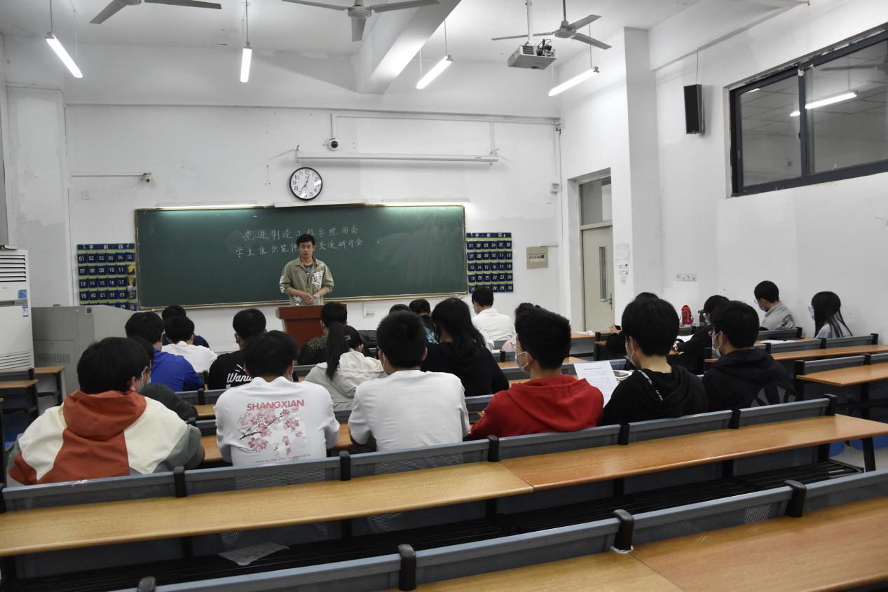 先進制造工程學院學生會融媒體中心分管主席譚浩給宣傳部的同學們傳授寫新聞稿的知識和技巧