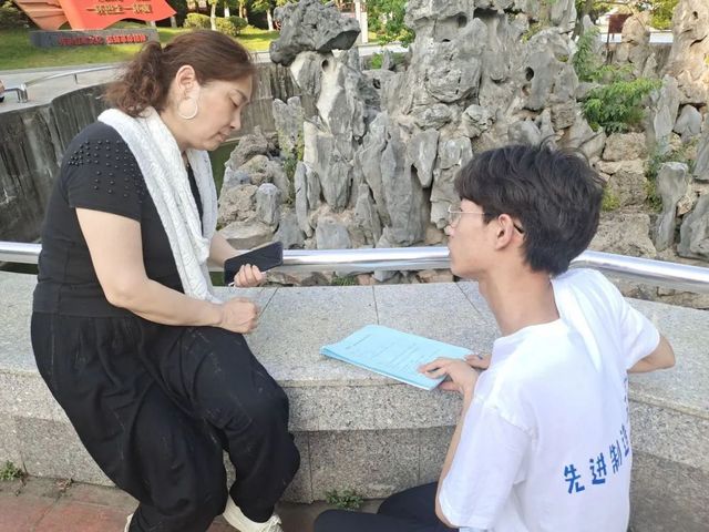 在紅軍廣場,調研團隊成員就金寨縣鄉(xiāng)村振興政策對紅軍廣場周邊居民進行社會調研及宣傳,并發(fā)放黨史學習與疫情防控宣傳手冊。