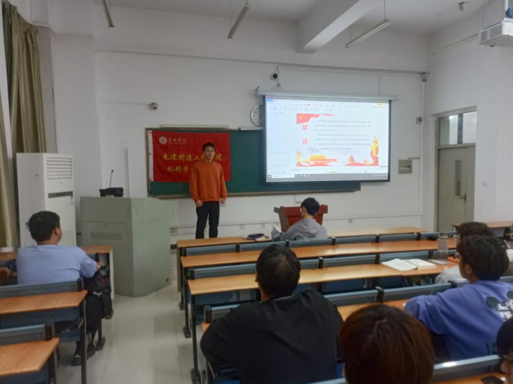 為使新生們更好地規(guī)劃自己的未來(lái)、度過美好的校園時(shí)光,進(jìn)一步樹立正確的社會(huì)觀、人生觀和價(jià)值觀,機(jī)制學(xué)生黨支部于2023年10月25日晚上在36棟106教室開展“學(xué)長(zhǎng)來(lái)了——我的校園時(shí)光”交流分享主題黨日活動(dòng)。本次活動(dòng)由機(jī)制學(xué)生黨支部書記威力旺老師主持,支部正式黨員周家喆、預(yù)備黨員程薇、發(fā)展對(duì)象溫司君及劉凡上臺(tái)分享了自己關(guān)于思想、學(xué)習(xí)、生活、工作等方面的心得,2023級(jí)機(jī)制專業(yè)全體新生參加了本次活動(dòng)。
