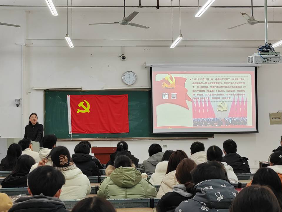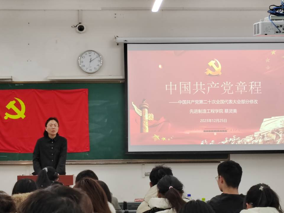為深入學習習近平新時代中國特色社會主義思想、貫徹落實黨的二十大精神,2023年12月25日中午,我院黨委副書記、紀委書記蔡靈美老師在35棟101教室為自動化學生黨支部和學院2023年新發展黨員開展了以“黨的二十大《中國共產黨章程》修改”為主題的黨課教育培訓。