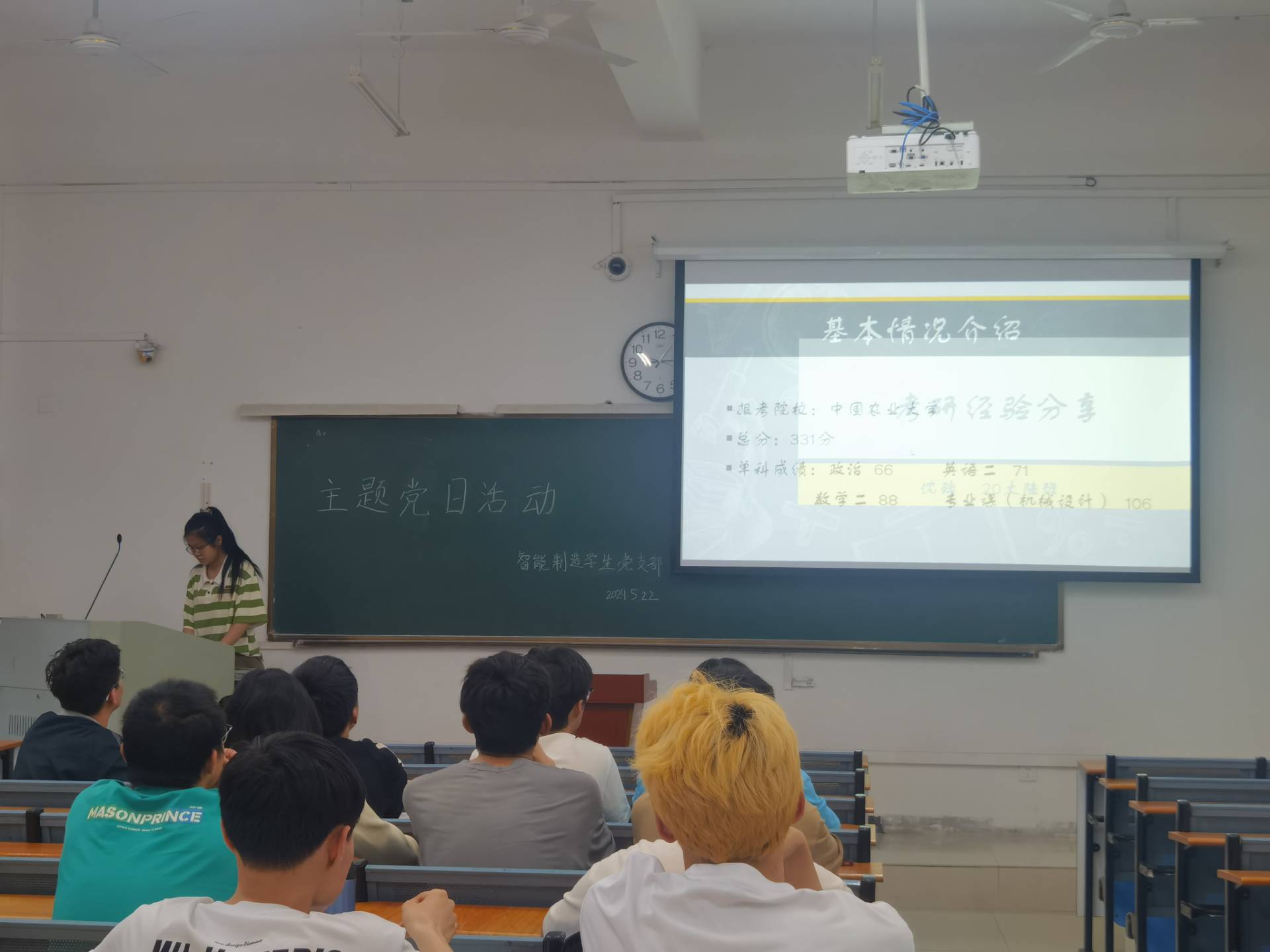為建設(shè)優(yōu)良學(xué)風(fēng)、營造濃厚的學(xué)習(xí)氛圍,加強(qiáng)學(xué)生對(duì)考研的認(rèn)識(shí)和了解,發(fā)揮優(yōu)秀學(xué)子的榜樣引領(lǐng)作用,以便幫助同學(xué)們盡早確立目標(biāo),作出合理的選擇與規(guī)劃。智能制造學(xué)生黨支部支部于5月22日中午在36-105教室成功舉辦考研經(jīng)驗(yàn)交流會(huì)主題黨日活動(dòng)。