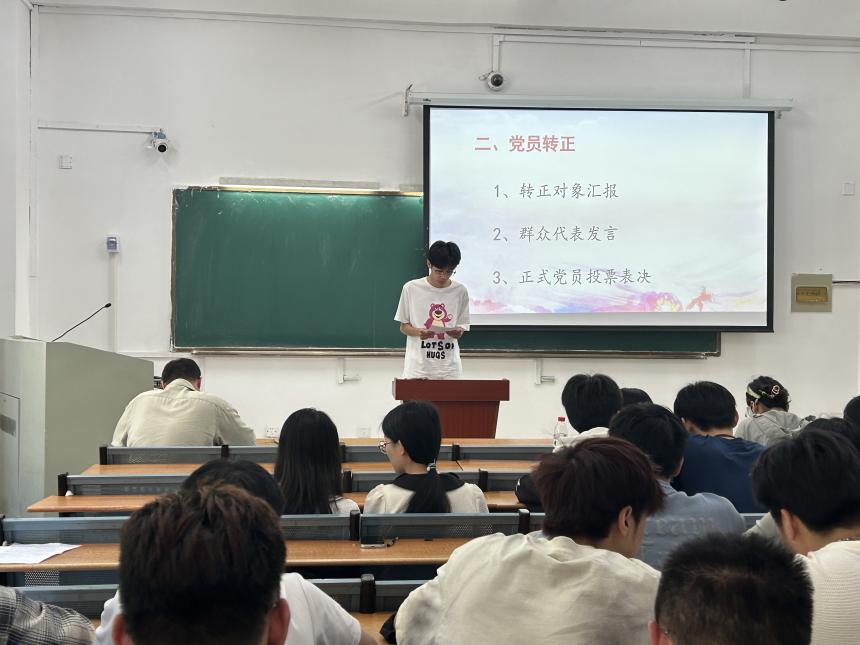 5月28日,自動化學生黨支部2024年上半年黨員轉正大會在36棟108教室舉行,教師黨員張傲、支部學生黨員和群眾代表參會。學生兼職副書記王旖薇同志主持會議。