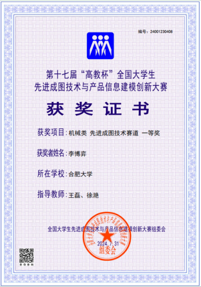 2024年7月,第十七屆全國大學生先進成圖技術與產品信息建模創新大賽在貴州大學舉辦,來自國防科技大學、武漢大學、華中科技大學、哈爾濱工業大學等全國895所高校,12694名學生同場競技。我校學子表現優異,共獲得個人全國一等獎1項、二等獎1項、三等獎4項、團體獲三等獎的優異成績。