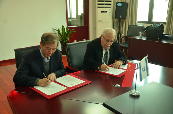 After the meeting, two parties sign a cooperation agreement, after which Mr. Shimon Gepstein gives a lecture for bio-tech faculty and students on Significance of Israels Innovation in Solving the Global Food, Water and Energy Crisis.
