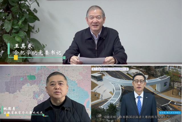 On December 9, the 15th “Soonchunhyang Cup” Korean Speech Contest, hosted by Anhui Provincial Department of Education and organized by Hefei University and Soonchunhyang University, was successfully held in HFU. Wang Qidong, Chair of HFU Council, and Jin Chengyu, President of Soonchunhyang University(South Korea) delivered speeches respectively for its commencement. Three Professors from Soonchunhyang University, Li Zaihao, Piao Genshun and Zhang Youmei, judged the competition.