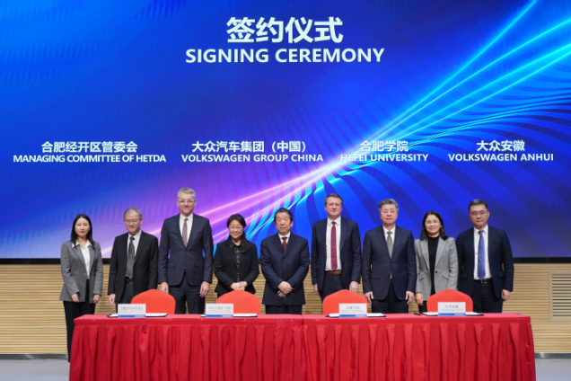 On February 20, hosted by Wu Chunmei, President of Hefei University, the unveiling ceremony of the Volkswagen College was held in Hefei Sino-German Cooperation and Innovation Zone, aiming to promote the in-depth industry-education integration, school-enterprise collaborative education, and create a dual-system model of higher education cooperation. Jens Pfitzinger, Executive Vice President of Volkswagen Group (China), and Erwin Gabardi, CEO of Volkswagen (Anhui) Co., Ltd. attended the ceremony and delivered speeches.