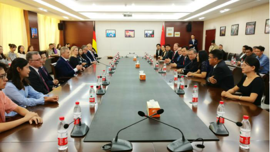 Christian Wulff, former President of Germany, as well as chairman of the Global SME Alliance , visits HFU on the morning of September 21st, 2019. Wang Qidong, President of HFU, meets him and his delegation.