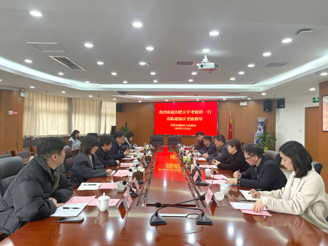2月25日,學校調研團一行7人前往瑤海區,就校地合作事宜開展實地調研及座談交流活動。瑤海區委常委、區政府常務副區長柳偉、合肥東部新中心建設管理辦公室副主任王峰、瑤海區委組織部、教體局、科技局、投促中心等相關部門負責同志出席座談交流。校黨委組織部、學生處、人事處、科研處及國際交流合作處相關負責人參加此次調研交流。