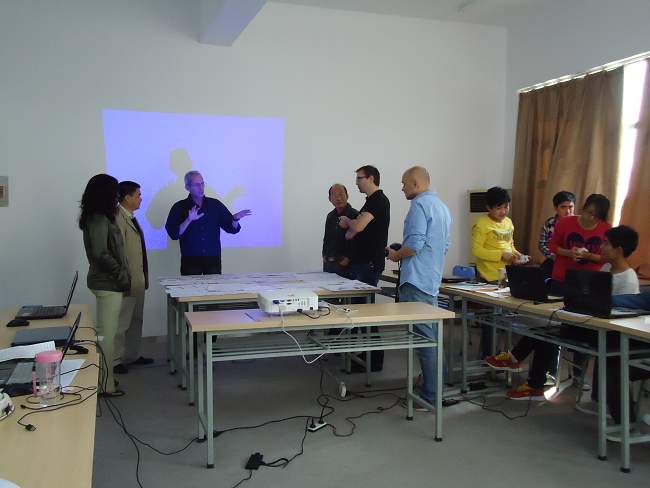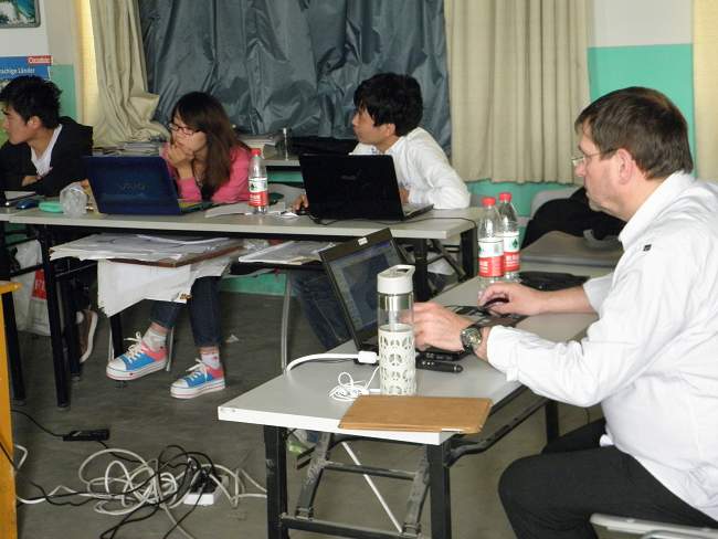 2010年,合肥學院與以漢諾威應用科學大學為代表的德國高校協作委員會共同創建了合肥德國應用科學學院,當年,開辦了工業設計和機械設計制造及其自動化兩個專業并開始招生。2010級兩個專業的學生在進行了德語強化學習和專業基礎模塊的學習之后,根據人才培養方案確定的教學計劃,從上學期開始,逐漸進入由德方教授主持開展教學活動的學習階段。繼霍恩教授、夸斯教授在上學期來肥任教之后,本學期,又有6位德方教授先后來我院授課或開展項目教學活動。