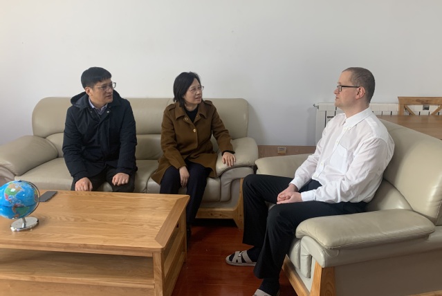 1月17日上午,在中國(guó)傳統(tǒng)佳節(jié)春節(jié)來(lái)臨之際,吳春梅校長(zhǎng)看望慰問(wèn)假期留校的德籍專(zhuān)家湯衛(wèi)思(Thomas Weise)教授,為他送去親切慰問(wèn)和新春祝福。國(guó)際交流合作處處長(zhǎng)、中德人才交流中心主任張慧等人陪同看望。