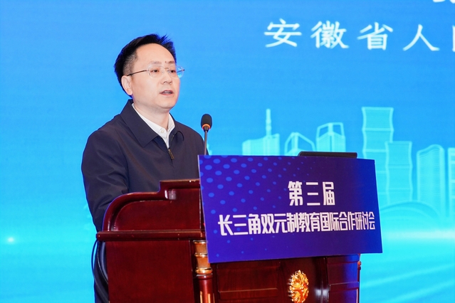 2023年11月24日,由安徽省教育廳、江蘇省教育廳、浙江省教育廳、上海市教育委員會共同主辦、合肥學院牽頭承辦的第三屆長三角雙元制教育國際合作研討會在合肥召開。會議的主題是學習二十大報告實施科教興國戰略,貫徹習近平總書記考察安徽重要講話精神,推動教育國際合作交流和長三角教育一體化高質量發展,推進教育鏈、人才鏈、產業鏈、創新鏈有機融合,服務現代化美好安徽建設和長三角一體化發展戰略。長三角三省一市81所應用型本科院校、高等職業院校、中等職業學校、企業以及滬蘇浙皖教育主管部門負責人共180多名代表參加會議。