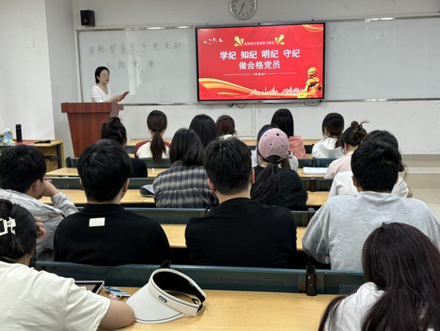 2024年6月4日,國際貿易學生黨支部順利召開作風紀律專題黨課。支部書記劉丹青帶領全體黨員學習《中國共產黨紀律處分條例》,努力在學紀、知紀、明紀、守紀上有新進步新提升,確保黨紀學習教育走深走實、取得實效。