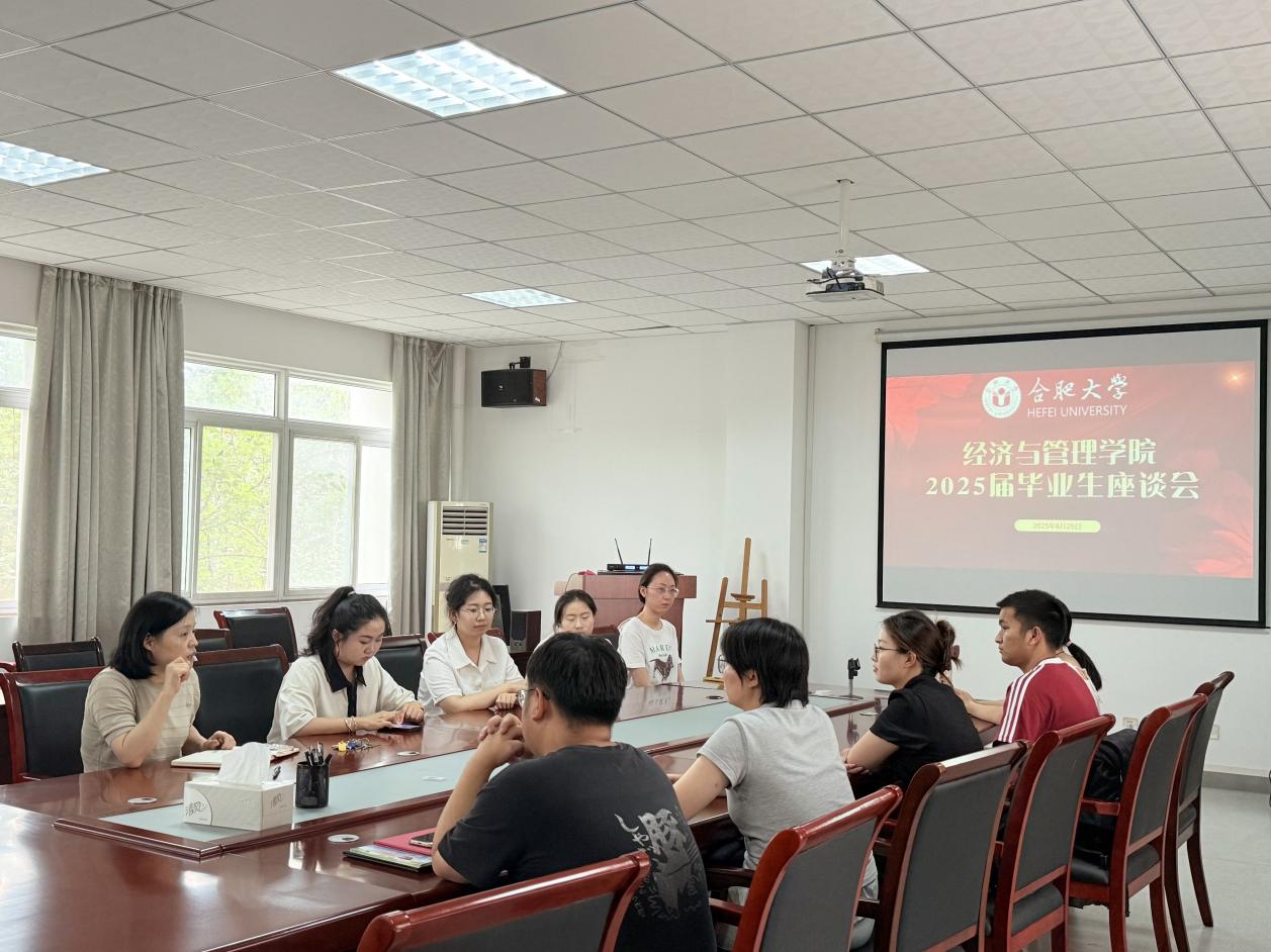 6月25日下午,經(jīng)濟與管理學(xué)院2025屆畢業(yè)生座談會于一期4棟二樓會議室召開。經(jīng)濟與管理學(xué)院黨委副書記夏丹青,畢業(yè)班輔導(dǎo)員老師和2025屆畢業(yè)生代表參加會議。