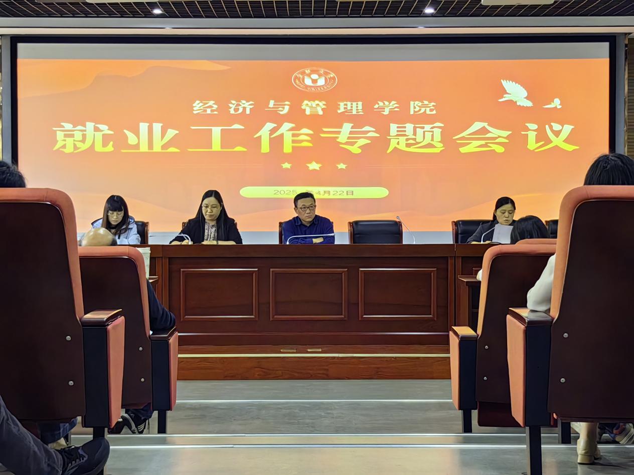 為進一步落實學校關于畢業生就業工作的部署要求,凝聚全員促就業合力,推動2025屆畢業生高質量就業,4月22日下午,經濟與管理學院在學院報告廳召開全院教師就業工作推進會。會議由學院黨委書記倪澤強主持,學院領導班子、各系主任及全體教職工參加。 會上,學院黨委副書記夏丹青首先通報了當前學院畢業生就業工作進展。她指出,面對復雜嚴峻的就業形勢,學院前期通過訪企拓崗、專場招聘、精準幫扶等舉措取得一定成效,但部分專業就業率仍低于預期。她強調,就業是最大的民生工程,全院教師要牢固樹立“就業育人”理念,將就業工作融入教育教學全過程,形成“全員參與、全程指導、全方位服務”的工作格局。