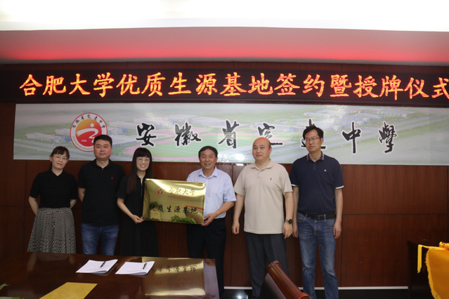 2024年5月22日上午,合肥大學經濟與管理學院前往安徽省定遠中學進行“優質生源基地”簽約授牌儀式。經濟與管理學院副院長于娜、教學辦公室主任李如瀟、經濟與管理學院教師潘娣、定遠中學黨委書記戴茂俊、校長劉學義、副校長鮑觀澤參加簽約授牌儀式。
