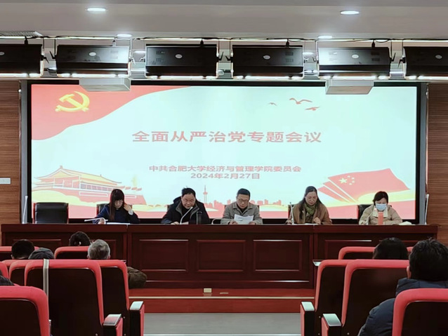 2024年2月27日,經濟與管理學院在六棟報告廳召開了全面從嚴治黨專題會議。本次會議由經濟與管理學院院長陳江華主持,學院全體教職工參加會議。 會上,學院黨委副書記夏丹青總結回顧了2023年我院全面從嚴治黨工作,研究部署了下一階段重點任務。夏丹青強調,要切實把思想和行動統一到黨中央決策部署上來,以高度的政治責任感和使命感,不斷推動全面從嚴治黨向縱深發展,為我院的高質量發展提供堅強政治保障。要堅持以嚴的基調強化正風肅紀,鍥而不舍落實中央八項規定精神,持續深化糾治“四風”,重點糾治形式主義、官僚主義,堅決破除特權思想和特權行為。要把紀律建設擺在更加突出位置,黨規制定、黨紀教育、執紀監督全過程都要貫徹嚴的要求,既讓鐵紀“長牙”、發威,又讓干部重視、警醒、知止,使全黨形成遵規守紀的高度自覺。 本次會議的召開,進一步明確了經濟與管理學院全面從嚴治黨的工作方向和重點,為推動黨建工作高質量發展奠定了堅實基礎。我院將以此次會議為契機,不斷加強黨的建設,努力開創全面從嚴治黨新局面。 (經濟與管理學院 撰稿人:邱彤 審稿人:王晨森)