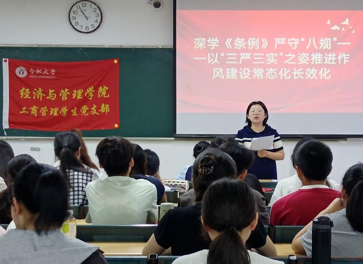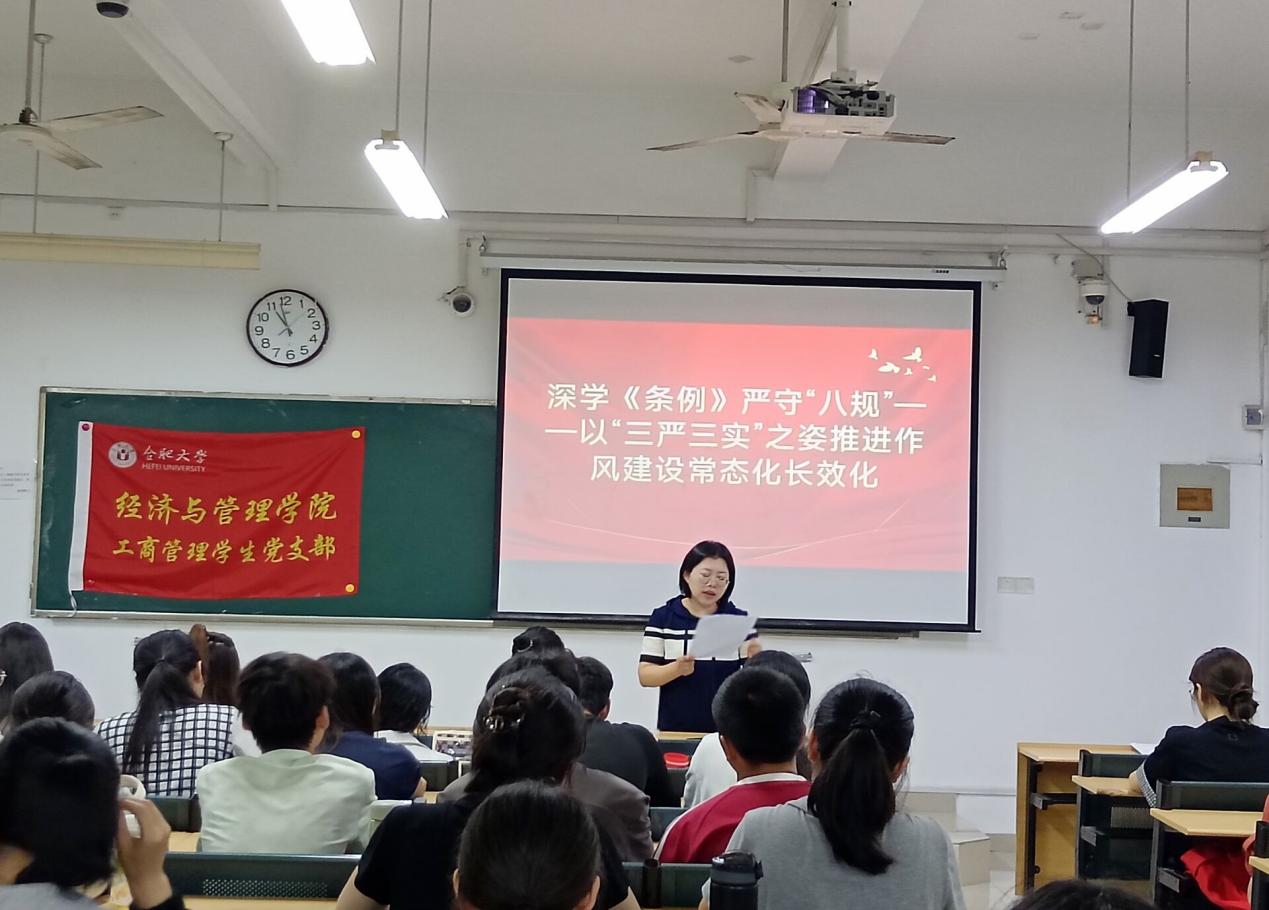 6月26日,經濟與管理學院工商管理學生黨支部在一期4棟101教室開展深學《條例》嚴守“八規”----以“三嚴三實”之姿推進作風建設常態化長效化主題黨課,由經濟與管理學院工商管理學生黨支部書記姚璇老師主講,支部全體黨員共同參加。