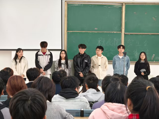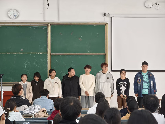 接下來是主席團(tuán)成員上臺(tái),首先進(jìn)行了自我介紹與自己所負(fù)責(zé)的部門。之后各個(gè)部門依次上臺(tái),部長們有條不紊地對(duì)部門近期的工作安排作了簡(jiǎn)要敘述,并帶領(lǐng)部門成員一一進(jìn)行自我介紹。每一位成員的眼神中都充滿了堅(jiān)定與熱情,他們誠摯地表示,在未來的日子里,一定會(huì)積極地與其他部門相互配合、協(xié)同工作,全心全意地為材化學(xué)院的同學(xué)們打造優(yōu)質(zhì)的服務(wù),同時(shí)精心籌備豐富多彩的活動(dòng),力求讓每一位同學(xué)都能在材化學(xué)院這個(gè)大家庭中擁有充實(shí)而美好的回憶。