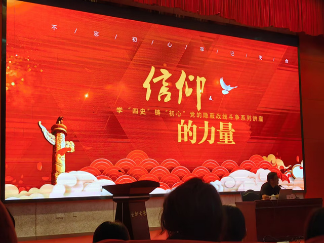 為深入學習黨史,感悟信仰力量,5月20日,中午12點20分,一場以“信仰的力量”為主題的專題黨課在圖書館報告廳A廳舉行。校黨委宣傳部部長賈峰老師通過豐富的歷史資料與生動案例,為同學們呈現了一段驚心動魄的隱蔽斗爭歷史。